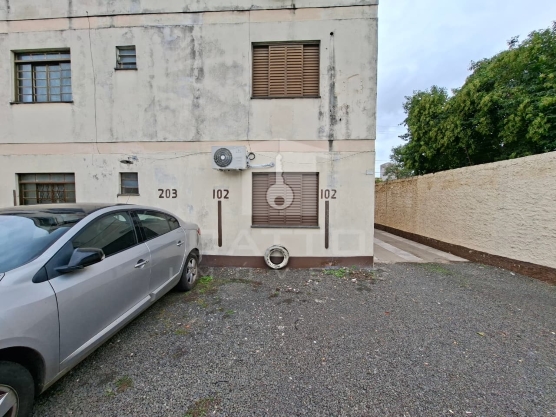 | Apartamento com um dormitório, sala, cozinha, banheiro, área de serviço e garagem. |
