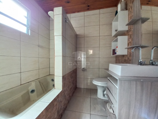 | Casa com 01 suíte, 01 dormitório, 03 salas sendo uma com lareira, banheiro social, cozinha, área de serviço, área de lazer com churrasqueira e garagem para 02 carros. | |
