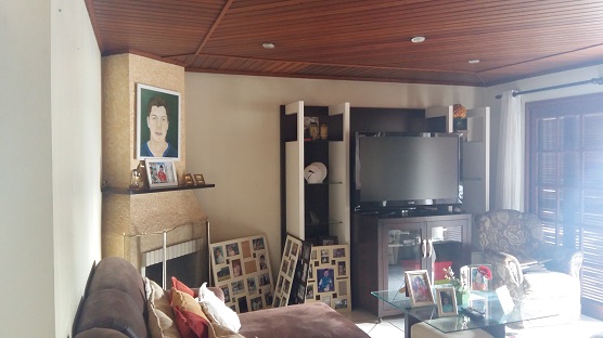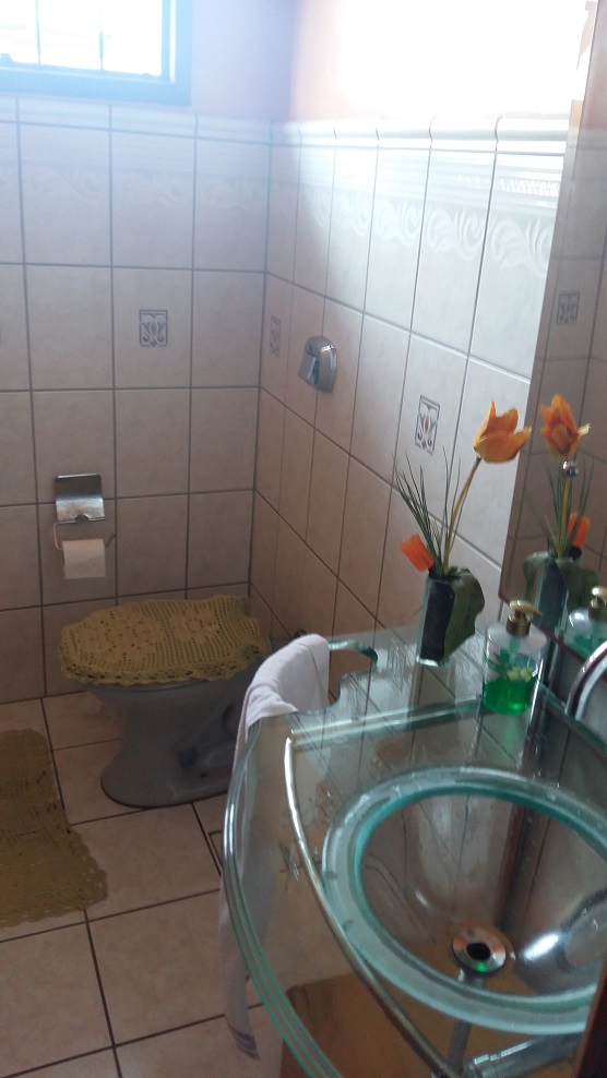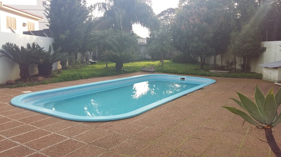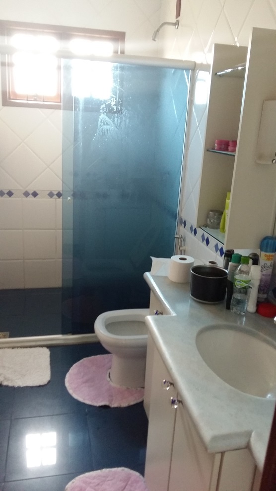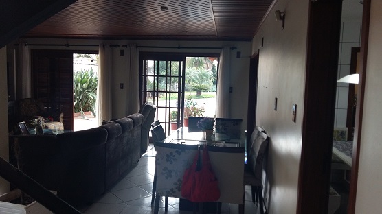 | Casa de alvenaria com 01 suíte com closet, 3 dormitórios, sala com lareira, hall de entrada, circulação, escadaria, lavabo, 2 banheiros, cozinha, lavanderia, dep. de empregada, salão de festas, piscina, garagem para 3 carros. | |