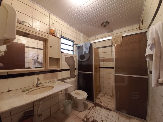 | Casa de Alvenaria de 2 pisos com 02 dormitórios, banheiro, duas peças banheiro e garagem; Salão comercial com subdivisões e banheiro (mini mercado). | |